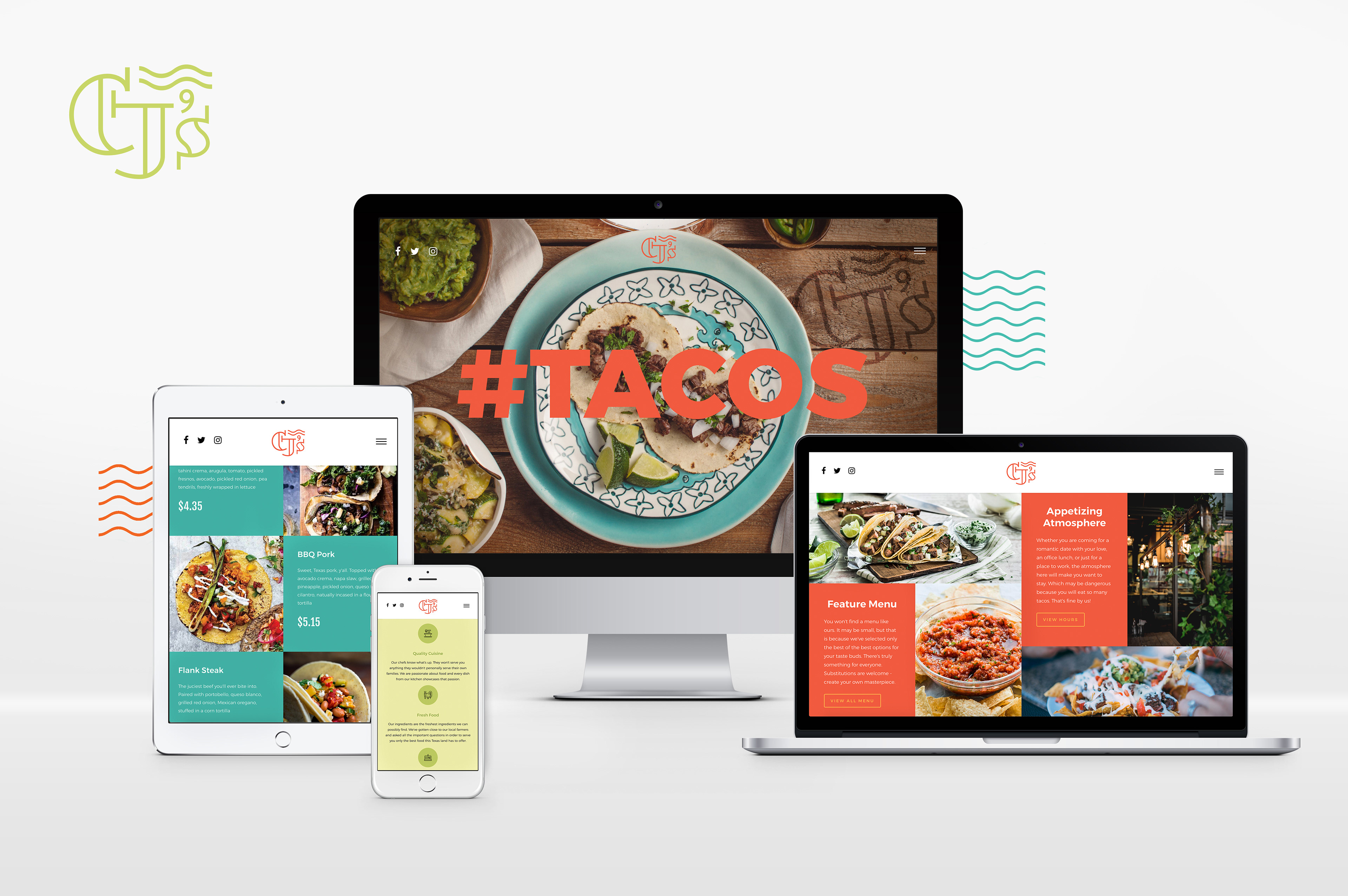 Cj's Tacos is a trendy taco shop located in the Pearl District of San Antonio serving unique tacos and Tex Mex cuisine. This responsive website was developed and designed to showcase the fun personality of the taco shop.